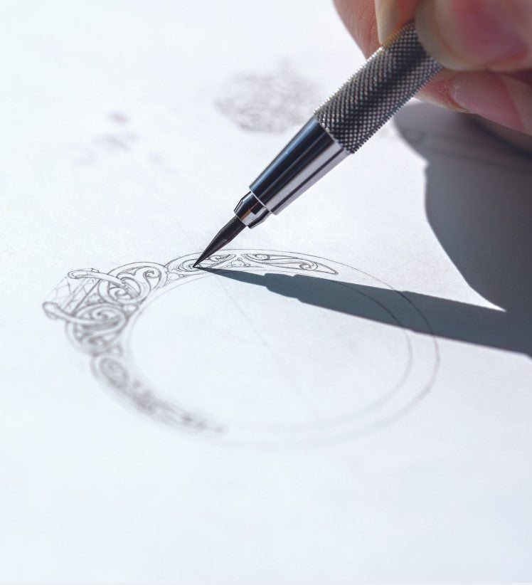 After reviewing your inquiry, our expert designer, Ross, will schedule a complimentary consultation with you. During this consultation, Ross will show brief sketches or preliminary CAD (Computer-Aided Design) renders he has created based on your ideas. Additionally, we take this opportunity to learn more about you or the recipient of the piece. Understanding your style, preferences, preferred stone selection, metal colors, and more helps us tailor the design to your exact specifications.
