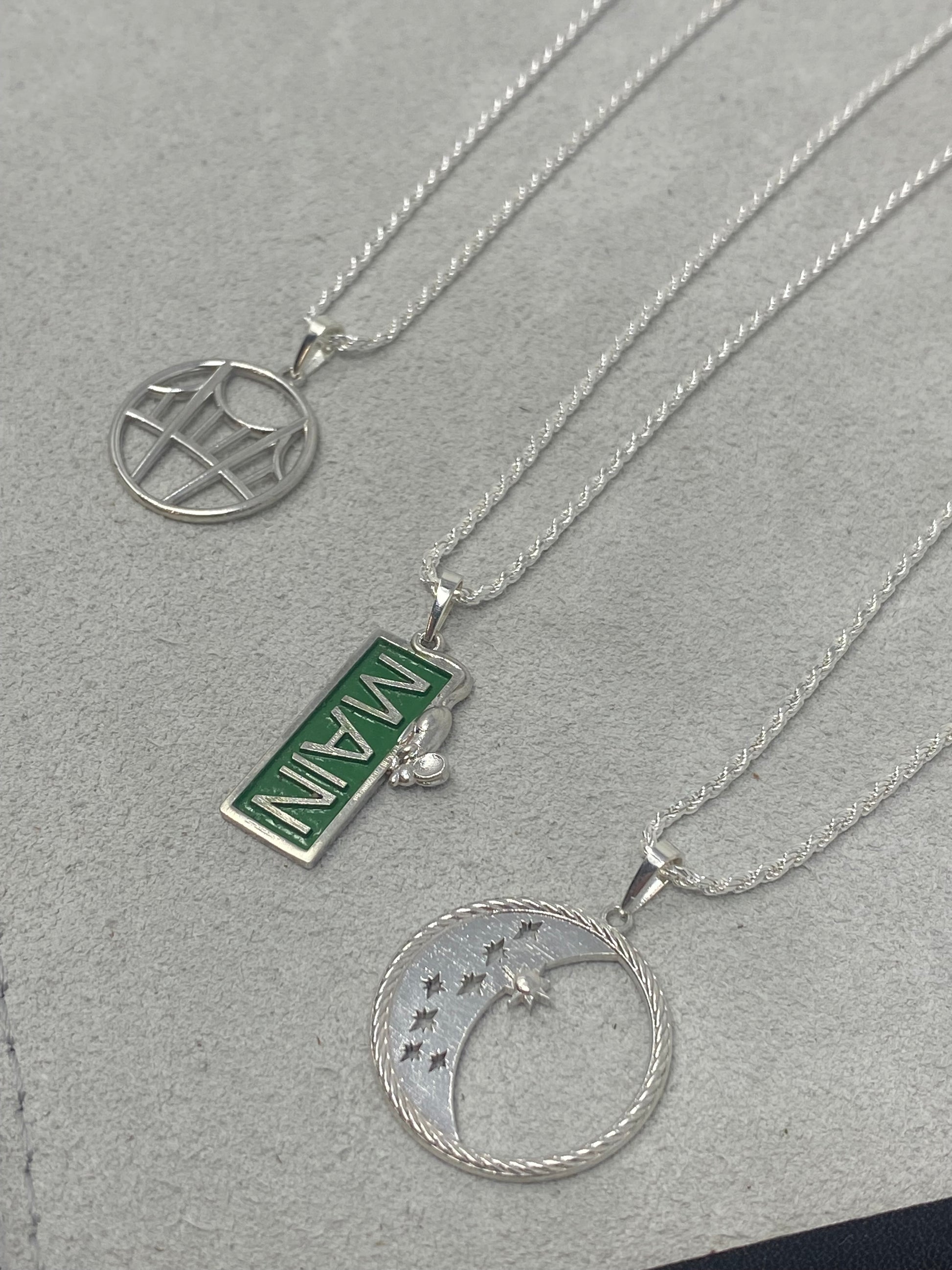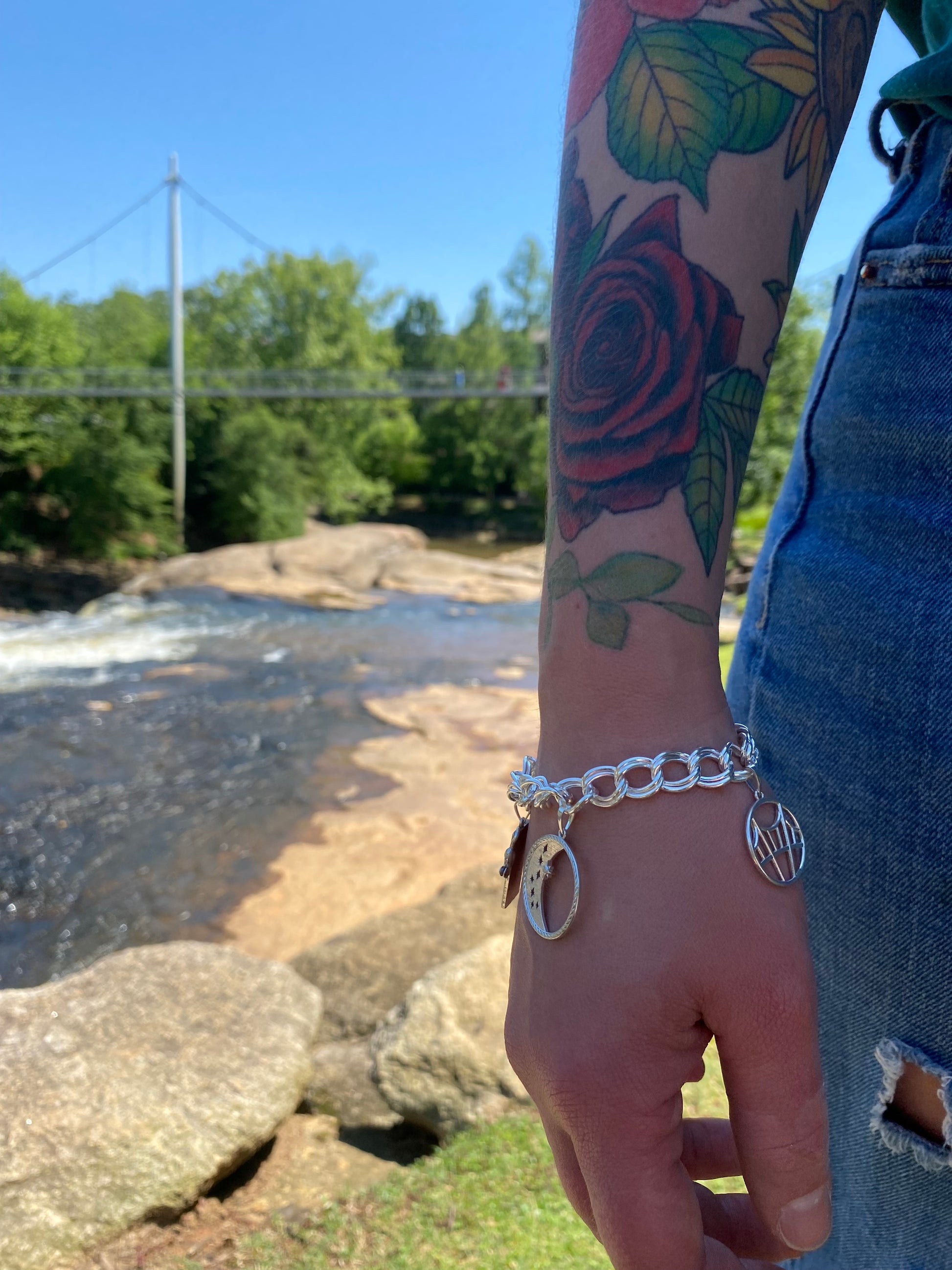 Celebrate Greenville's rich textile history with our Textile Crescent Necklace. Inspired by the historic "Textile Crescent," an area comprised of eight mills and a bleachery that once powered Greenville, South Carolina's economy.
